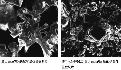 『量子水處理器』產(chǎn)生的干擾和共振使得物質(zhì)的微觀特性發(fā)生改變,以水垢中最常見的碳酸鈣為例,循環(huán)冷卻水中含有大量的重碳酸鈣,因發(fā)生如下反應(yīng)而形成碳酸鈣垢: